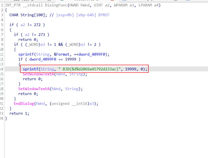 根据搜索到的内容确定位置到这个函数,在这个函数最后他输出了flag