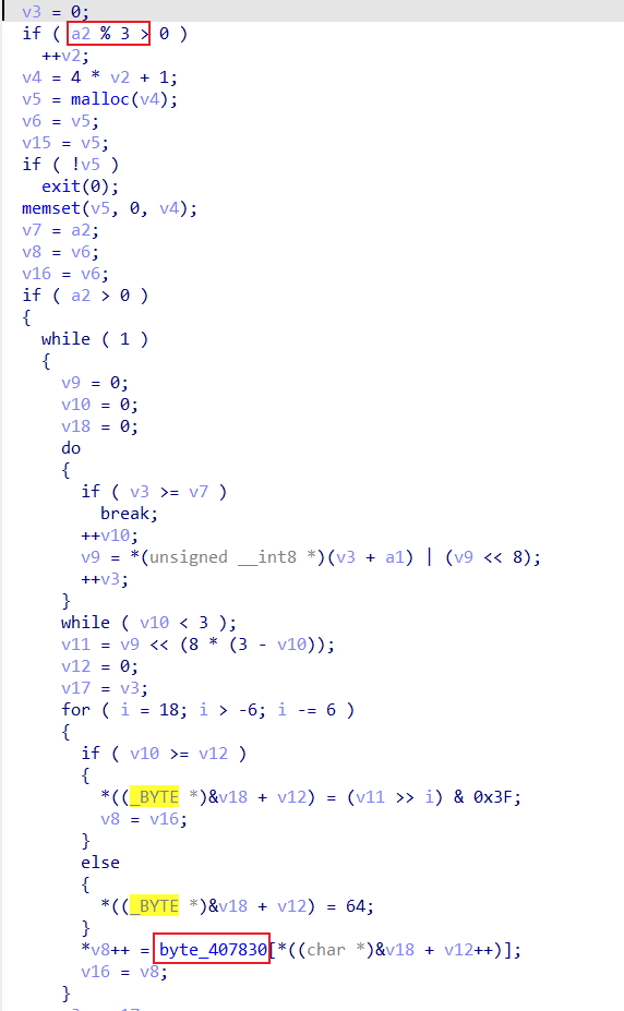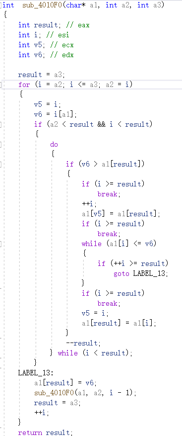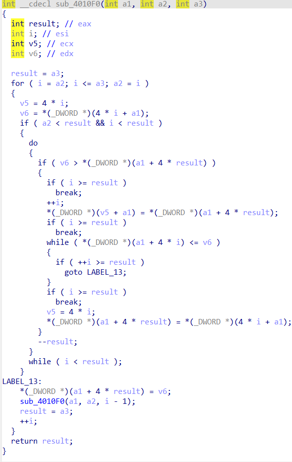直接改成c代码看结果。这个地方的dword和4这种表达是因为伪代码从汇编来的,默认为单字节,所以在c代码中注意将a1+i4改为a1[i].