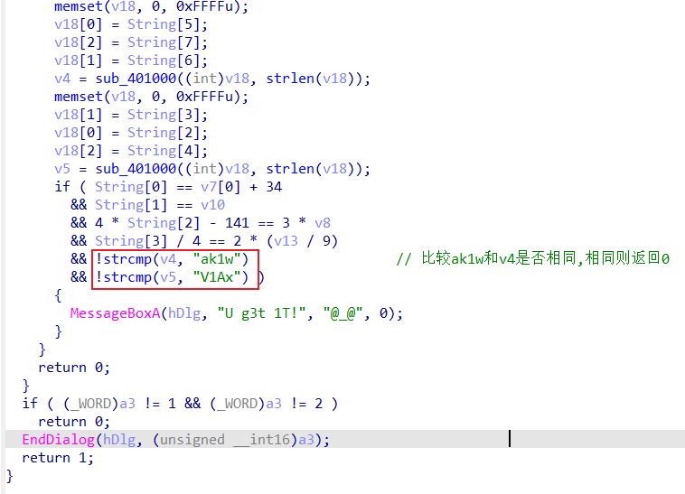 if处的string解决了,来看strcmp的内容v4和v5在前面都经过了401000的处理看一眼是啥