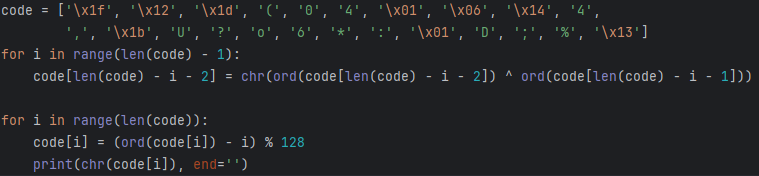 b = [0x7e, 0x7d, 0x7c, 0x7b, 0x7a, 0x79, 0x78, 0x77, 0x76, 0x75, 0x74, 0x73, 0x72, 0x71, 0x70, 0x6f, 0x6e, 0x6d, 0x6c,