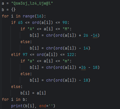 第二种方式是将第二个if所给出的字符串按照第二个if的规则进行处理直接得到flag